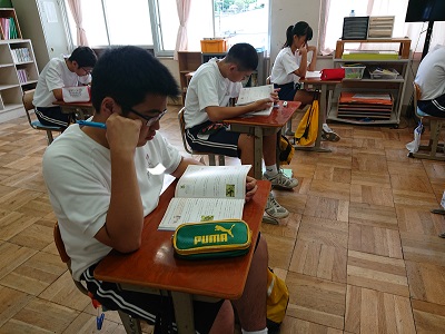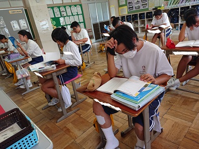3年生は数学で「関数y=ax2」という単元を学習しています。今日は単元テスト前にテスト勉強をしていました。