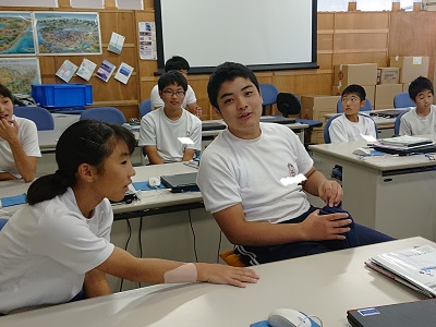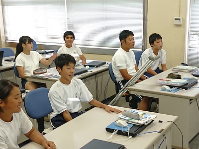 2年生は英語で「自分が楽しんだことを伝えるようになろう」という目標のもと、「I enjoyed 〜ing 〜.」という文章を英文で作り、紹介しあいました。