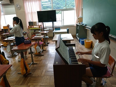 昼休み、潮風祭に向けて、クラス合唱練習を行っていました。