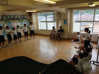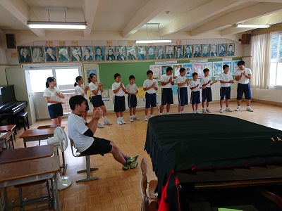 1・2年生が合唱交換会を行っていました。2年生が合唱披露した後、1年生が感想発表を行いました。