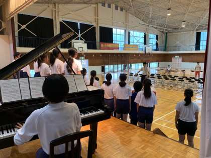 第5・6時に潮風祭文化の部総練習を行いました。入退場の確認やプログラム順に通してみました。
