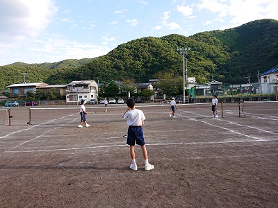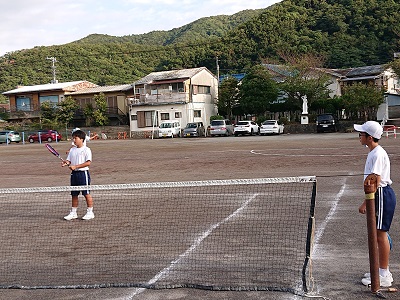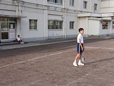 ソフトテニス部の朝練習の様子です。合唱練習前に打ち込みを行っていました。
