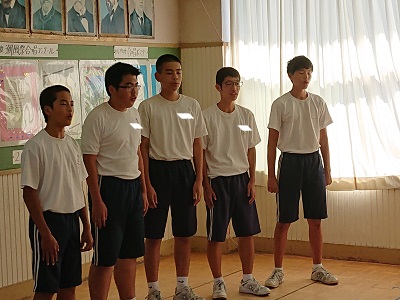 昼休み、2・3年生は合唱曲の交換会を行いました。3年生は2年生の前で心を込めて歌いました。