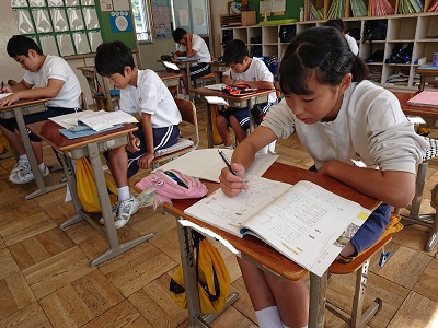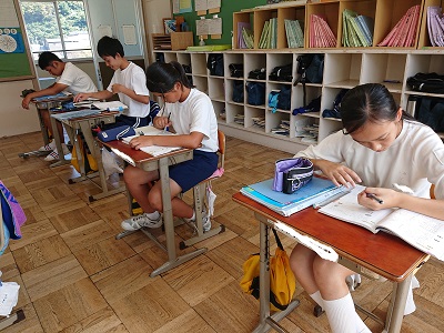 2年生は数学で1次関数について学習をしています。今日は1次関数のグラフを利用して課題解決を行いました。