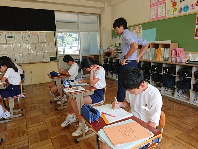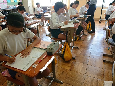 1年生は数学で1次方程式について学んでいます。今日は、比例式の求め方について考えました。