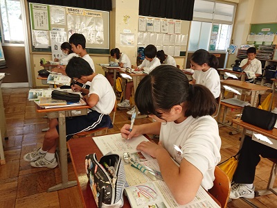 1年生は社会で「東南アジアの発展と課題」について学習しています。東南アジアはどのように貿易を進めているのか、資料から読み取りまとめました。