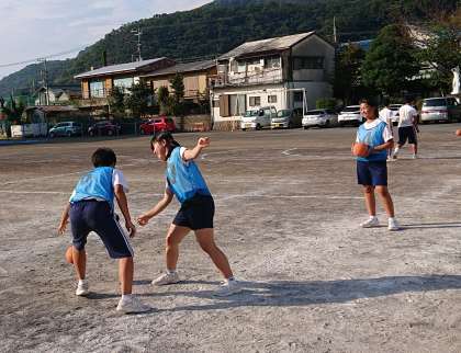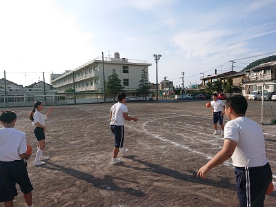2年生は体育でハンドボールについて学習しています。それぞれチームに分かれてスキルアップの練習を行いました。