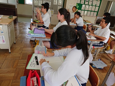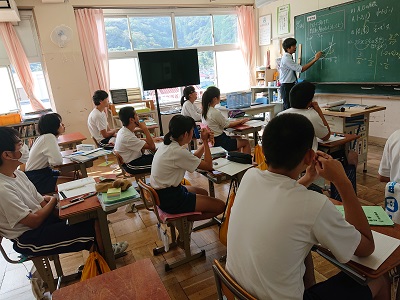 3年生は数学で「関数y=ax2」という単元を学習しています。今日は中間テストに向け、模擬問題を解きました。