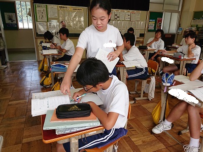 1年生は数学で1次方程式について学んでいます。今日は、比例式の解き方について考えました。