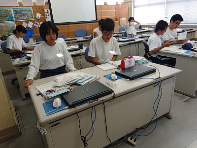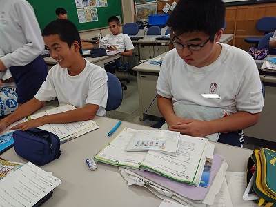 3年生は英語で単元のまとめを行っていました。既習事項についてワークノートを使って復習しました。