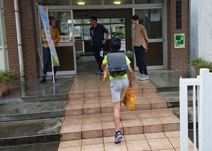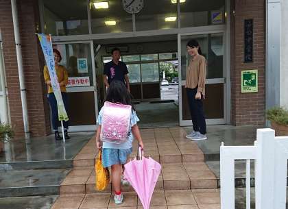 PTAあいさつ運動の様子です。朝早くから子どもたちのためにありがとうございます。児童生徒もあいさつ当番担当の保護者の方へ大きな声で挨拶していました。