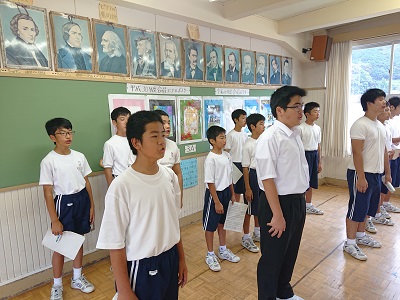 朝練習では、連合音楽会に向けてパート別で練習を進めました。