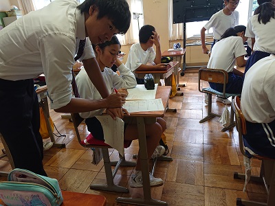 1年生は数学で1次方程式について学んでいます。今日は、比例式の解き方について、理解を深める問題を行いました。