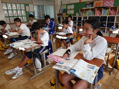 2年生は社会で「九州地方の生活の舞台」について学習を進めています。九州地方について外観し、生活の舞台になっている自然環境はどのような特色が見られるか、資料集などから考えました。