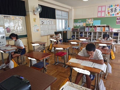 本日、英語検定準会場として4教室(準2級から5級)で試験を実施しました。この英語検定では小中合わせて16名の児童生徒が受検しました。小中の教員が試験監督を務めました。