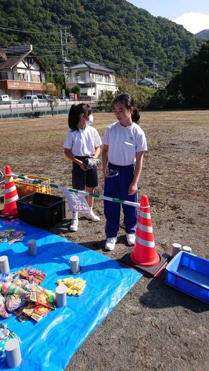 部田神社祭典輪投げ大会ボランティアとして、1年生2名が活躍しています。