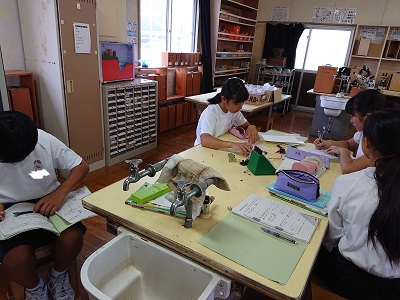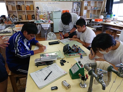 2年生は理科で「直列回路を流れる電流」について学習しています。みんなで電流計の使い方を確認しました。