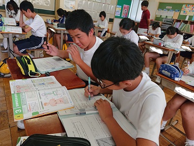 1年生は保健体育で「生命を生み出す体の成長」について学習を進めています。ヒトの体は、生命を生み出す体へどのように発達するか資料から読み取りました。