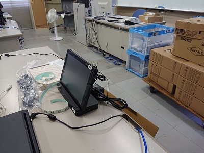 昨日、本日の2日間の日程で情報機器(タブレットパソコン)の整備が行われています。今後、ICT機器を活用した授業に役立てていきます。