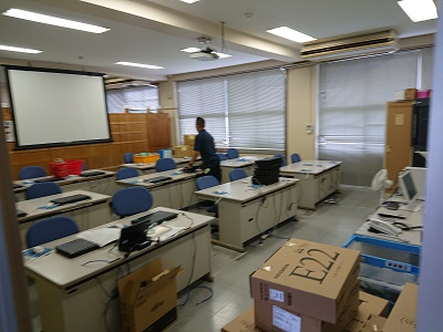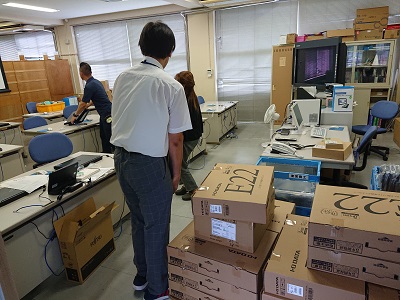 昨日、本日の2日間の日程で情報機器(タブレットパソコン)の整備が行われています。今後、ICT機器を活用した授業に役立てていきます。