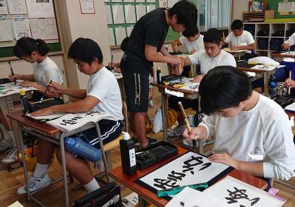 2年生は書写の時間において「雲海」という字を毛筆で書写しています。