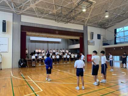 昼休みには、連合音楽会に向けて全校合唱練習を行いました。