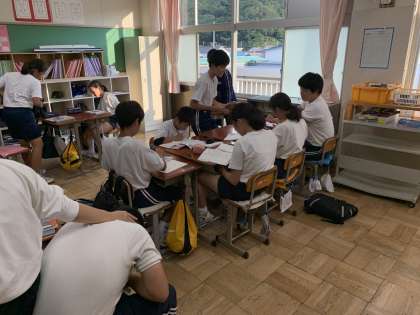 放課後、「助け合い学習」の様子です。中間テストに向けて、学力補充の時間にもなります。教員も各教室を回り、生徒の支援をします。