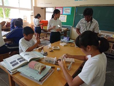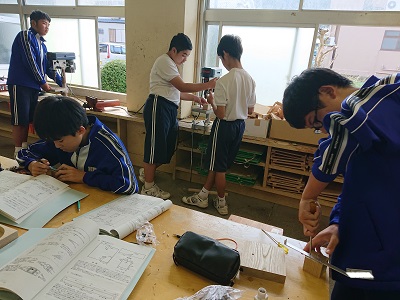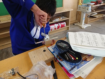 2年生は技術でドーム調光スタンドを作成しています。今日は電源コードのはんだ付けを行ったり、ソケット台の穴開け、ネジの取り付けを行ったりしました。今日は用務員さんがゲストティーチャーとなって生徒の学びを支援しました。