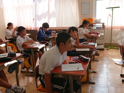 2年生は数学で「図形の性質の調べ方」について学習しています。平行線における同位角、錯覚について理解を深めました。