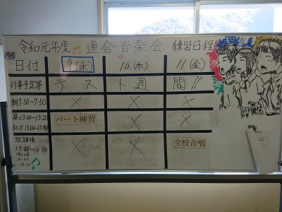 連合音楽会練習日程が1階生徒昇降口前に掲示されています。