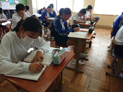 1年生は数学で「1次方程式」について学習しています。今日は、1次方程式のまとめ問題に取り組んでいました。