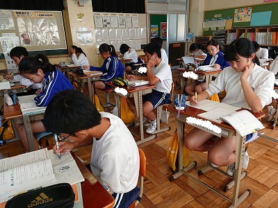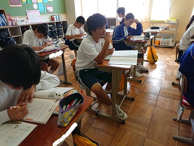 1年生は数学で「1次方程式」について学習しています。今日は、1次方程式のまとめ問題に取り組んでいました。