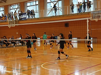 沼津市スポーツ祭バレーボール大会女子予選リーグ第1試合は強豪沼津三中との一戦です。