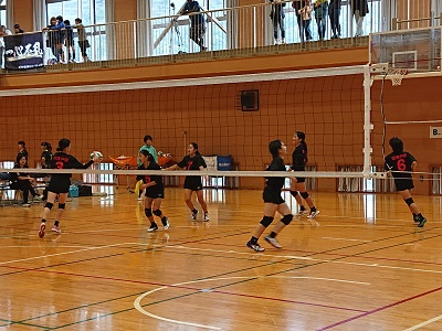 沼津市スポーツ祭バレーボール大会女子予選リーグ第1試合は強豪沼津三中との一戦です。