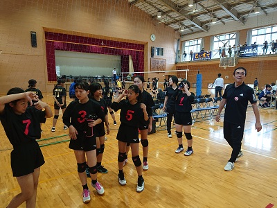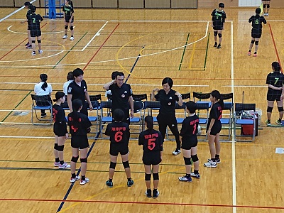 沼津三中との一戦、一進一退の攻防です。2セットが終わり1−1の接戦です。