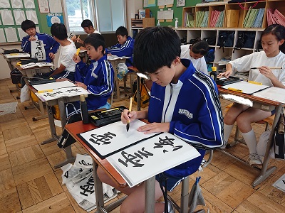 2年生は書写の時間において「雲海」という字を毛筆で書写しています。