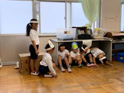 戸田小1年生が国語で学習した「てぶくろ」という教材をもとにした演劇発表を行いました。小学1年生から中学校教職員も招待され、演劇を参観させていただきました。