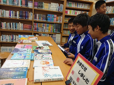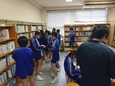 1年生は国語でテスト返却・テスト解説の後、学校図書館へ移動し、「おやこんぼチャレンジ」読書用の本選びを行いました。