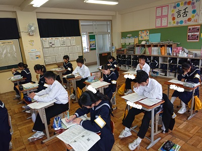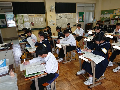1年生は理科で中間テスト返却がありました。生徒はテスト解説を受けながら、出来たところ、出来なかったところを再確認しました。