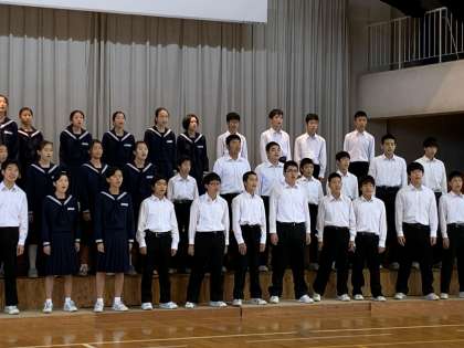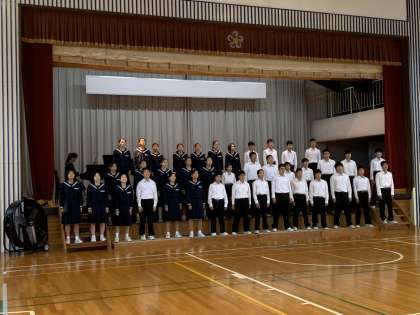 第2時に全学年で合同音楽を行い、連合音楽会前の最後の調整練習となりました。全員合唱を行いました。