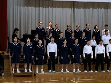第2時に全学年で合同音楽を行い、連合音楽会前の最後の調整練習となりました。全員合唱を行いました。
