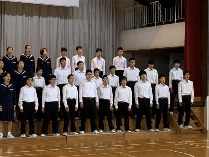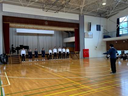 第2時に全学年で合同音楽を行い、連合音楽会前の最後の調整練習となりました。全員合唱を行いました。