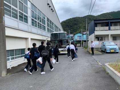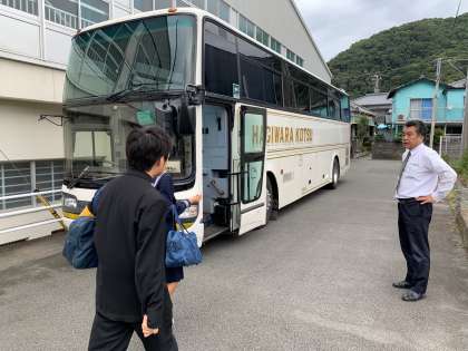 生徒がバスに乗車する様子です。