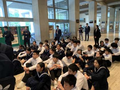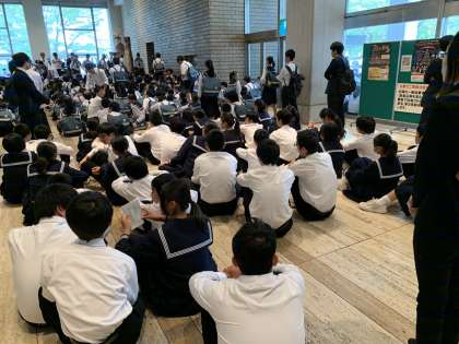 他校の生徒と一緒に入場待ちです。静かに待機しています。