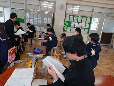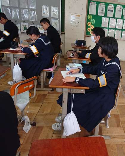 3年生は国語で中間テスト返却がありました。生徒はテスト解説を受けながら、出来たところ、出来なかったところを再確認しました。