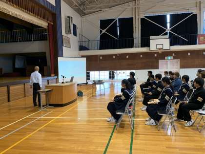 三島南高校の教員が説明している様子です。