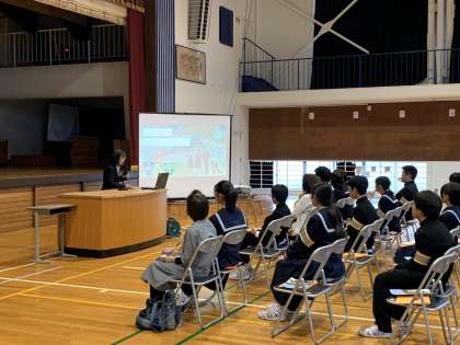 伊豆中央高校の教員が説明している様子です。