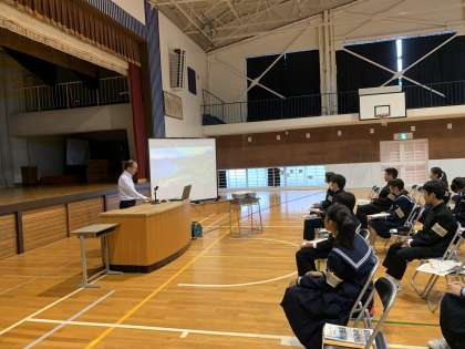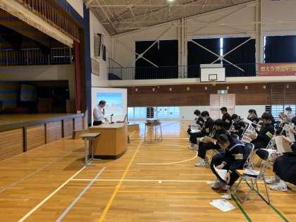 伊豆総合高校土肥分校の教員が説明している様子です。