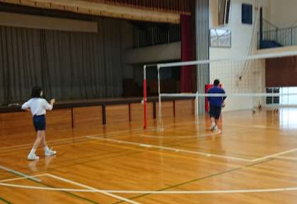バレーボール部の様子です。男女とも明日の決勝トーナメント1回戦を勝ち抜くために、意欲的に練習を行っています。