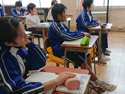2年生は数学で「三角形の内角と外角」について学習しています。三角形の角の性質について、考えを共有しました。